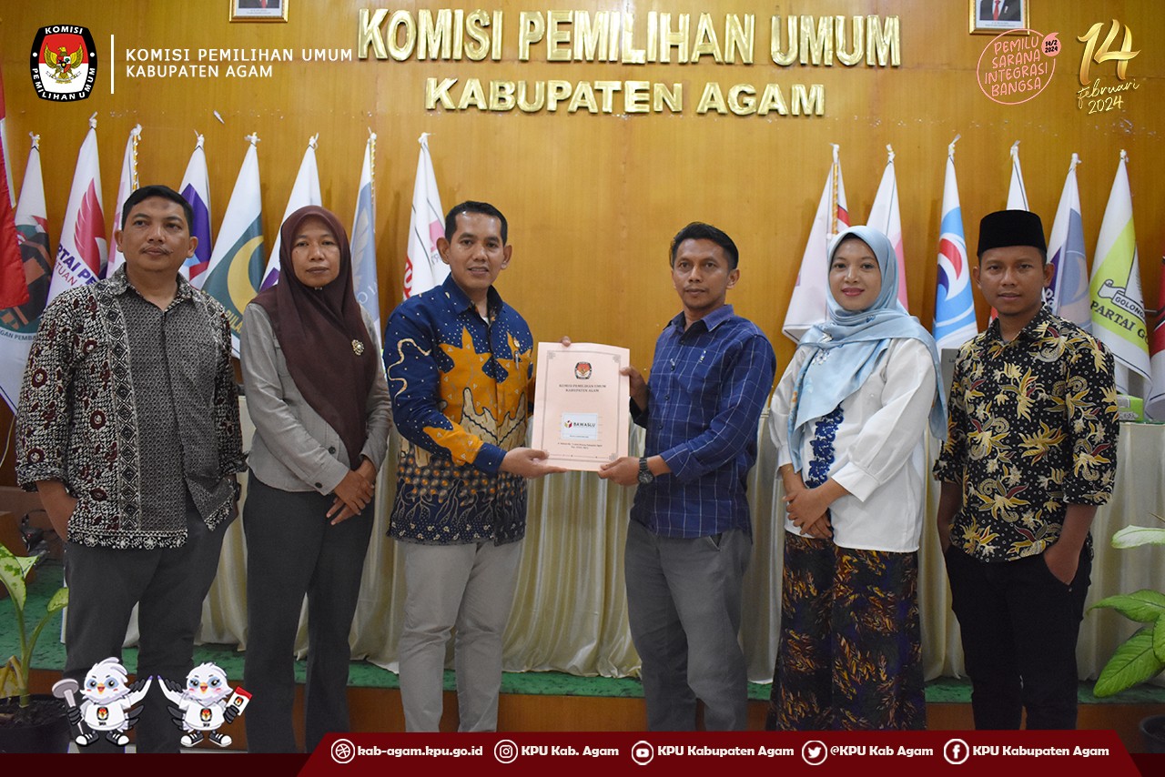 Berita acara hasil akhir verifikasi administrasi dokumen persyaratan Bakal Calon (Balon) anggota DPRD Kabupaten Agam telah diserahkan kepada partai politik peserta pemilu.