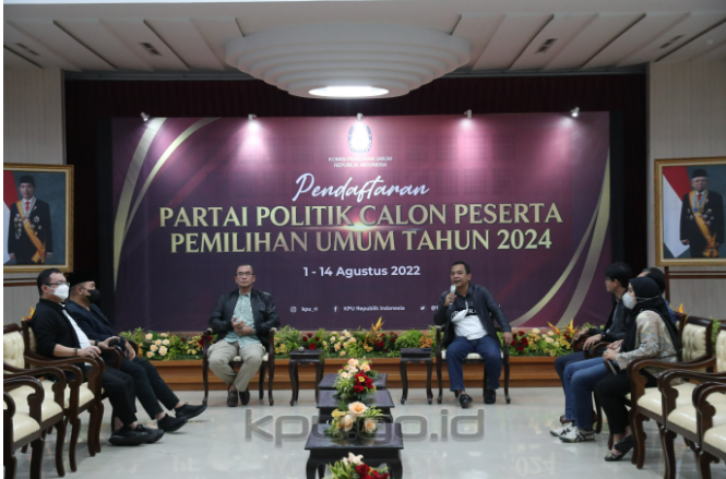 Tahapan Pendaftaran Partai Politik akan dimulai pada Senin, (1//8/2022). Untuk mendukung kelancaran kegiatan pendaftaran partai politik tersebut, KPU menggelar gladi bersih, Minggu (31/7/22) malam. Sebelum gladi bersih, Ketua KPU Hasyim Asy’ari didampingi Anggota KPU Betty Epsilon Idroos, Parsadaan Harahap, Yulianto Sudrajat, August Mellaz, dan Mochammad Afifuddin memberikan penjelasan terkait teknis pendaftaran partai politik kepada media. “Sudah ada sembilan partai politik yang akan hadir mendaftarkan diri di hari pertama pendaftaran, yakni Partai Demokrasi Indonesia Perjuangan, Partai Keadilan dan Persatuan, Partai Reformasi, Partai Keadilan Sejahtera, Partai Nasdem Partai Rakyat Adil Makmur, Partai Persatuan Indonesia dan Partai Gelombang Rakyat Indonesia,” kata Hasyim. KPU membuka pendaftaran mulai pukul 08.00 WIB. Partai yang sudah mengirimkan surat kepada KPU RI dan menginformasikan rencana kapan hari, tanggal dan jam mereka akan mendaftarkan partainya ke KPU RI, kemudian KPU RI akan mengatur jadwal dan protokolernya. Lanjut Hasyim, pimpinan partai politik dalam hal ini Ketua Umum dan Sekjen yang hadir akan dipersilakan menuju ruang transit. Jika sudah siap, partai politik didampingi oleh tim pendaftaran diarahkan ke Ruang Rapat Utama KPU di lantai 2 untuk menyerahkan dokumen pendaftaran, surat pendaftaran dan dokumen persyaratan lainnya. Setelah menyerahkan dokumen pendaftaran, surat pendaftaran dan dokumen persyaratan lainnya, Ketua Umum dan Sekjen kemudian meninggalkan Ruang Rapat Utama di lantai 2 untuk melakukan konferensi pers. Sementara itu, tim pendaftaran dari partai politik yang ikut hadir ke KPU RI akan melanjutkan pemeriksaan dokumen sekali lagi bersama tim pendaftaran KPU untuk memastikan kelengkapan dokumen, apakah sudah lengkap atau belum. “Untuk pemeriksaan ukurannya adalah kelengkapan dokumen. Apakah dokumen persyaratan yang dibawa ke KPU sudah lengkap atau belum. Yang akan diperiksa adalah dokumen hardcopy berupa surat pendaftaran, kemudian surat pernyataan tentang kantor tetap partai politik di tingkat pusat provinsi, kabupaten atau kota, dan dokumen rekapitulasi meliputi data tentang pengurus di tingkat pusat, di 34 provinsi, dan 75% kabupaten/ kota di setiap provinsi dan 30% jumlah kecamatan di 75% Kabupaten itu. Kemudian alamat kantor tetap dan keanggotaan partai yaitu 1000 atau 1/1000 jumlah penduduk di 75% kabupaten kota yang diajukan itu untuk mendaftar,” jelasnya. Ada dua kemungkinan terkait kelengkapan dokumen yang diserahkan ke KPU. Pertama, dokumen persyaratan dinyatakan lengkap. Jikavdokumen persyaratan dinyatakan lengkap ,maka KPU akan menerbitkan berita acara yang menyatakan bahwa dokumen persyaratan lengkap dan dinyatakan partai tersebut didaftar. Kedua, jika dokumen persyaratannya tidak lengkap atau belum lengkap, maka KPU belum bisa menerbitkan berita acara tersebut. KPU menunggu partai politik yang untuk melengkapi dokumennya sampai batas akhir pendaftaran partai politik yaitu pada 14 Agustus 2022 jam 23:59 WIB. Jika sampai batas akhir waktu ternyata partai politik tetap tidak dapat menyerahkan atau tidak dapat melengkapi dokumen persyaratan, maka KPU akan menerbitkan berita acara yang menyatakan bahwa dokumen persyaratan tidak lengkap dan dinyatakan tidak dapat mendaftar sebagai peserta Pemilu 2024. “Setelah partai politik mendaftar dilanjutkan dengan tahapan verifikasi administrasi. Partai politik yang statusnya dokumennya lengkap dan dinyatakan mendaftar, misalnya Senin 1 Agustus 2022 ada partai politik yang sudah diterbitkan berita acara dokumennya lengkap dan dinyatakan sudah mendaftar, maka esok harinya tanggal 2 Agustus sudah bisa dilakukan verifikasi administrasi. Jadi verifikasi administrasi dilakukan secara paralel tanpa harus menunggu yang lain-lain,” pungkas Hasyim. Hadir dalam gladi bersih Sekretaris Jenderal KPU RI Bernad Dermawan Sutrisno, Deputi Bidang Dukungan Teknis Eberta Kawima, Inspektur Utama Setjen KPU RI Nanang Priyatna, Kepala Biro Partisipasi dan Humas Cahyo Ariawan, Kepala Biro Hukum, jajaran pejabat eselon II Setjen KPU RI, rekan-rekan jurnalis foto, media daring, cetak, dan tv. Repost KPU RI