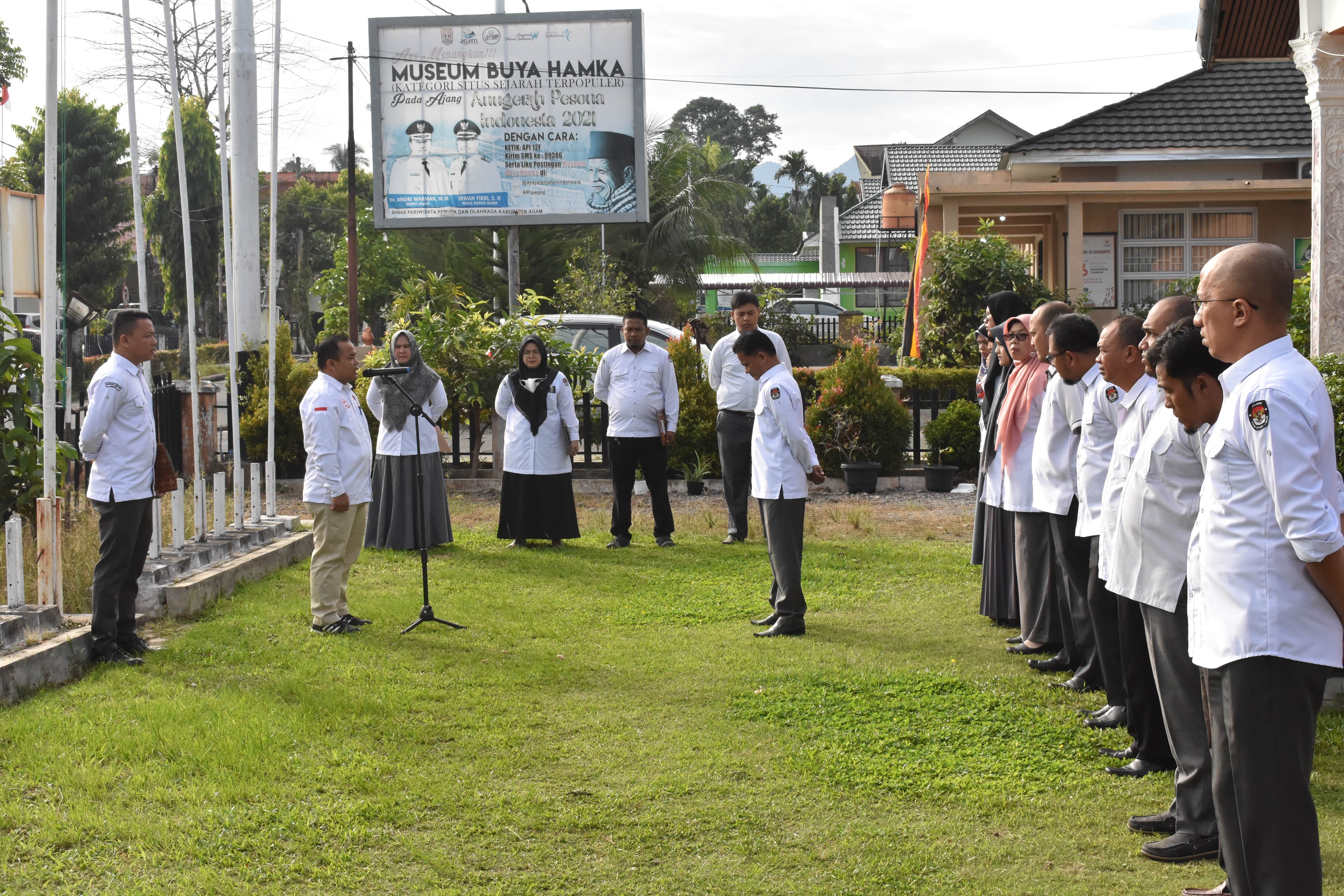 Komisi Pemilihan Umum Kabupaten Agam laksanakan apel pagi di halaman kantor KPU Kabupaten Agam, Senin, (20/6/2022). Apel pagi diikuti oleh, Kasubbag, Staf PNS dan Staf PPNPN KPU Kabupaten Agam, apel dipimpin oleh Sekretaris KPU Kabupaten Agam Oktadonis, .Pd,.M.I.P