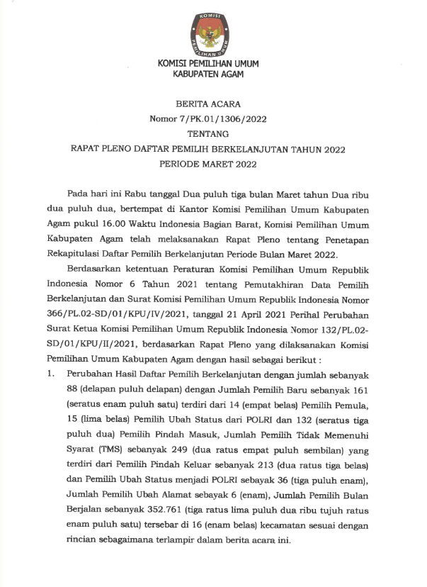 Hari ini Komisi Pemilihan Umum Kabupaten Agam melaksanakan kegiatan Penandatanganan Pakta Integritas Pejabat Pengawas dilingkungan Sekretariat KPU Kabupaten Agam, Rabu (30/3/2022).