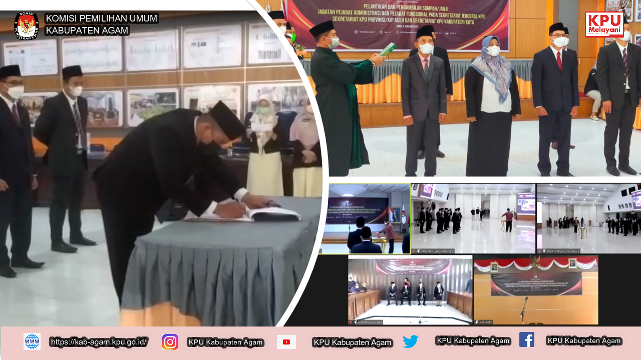 Sekretaris Jenderal (Sekjen) KPU RI, Bernad Dermawan Sutrisno melantik para sekretaris, pejabat administrasi, pejabat fungsional di Sekretariat Jenderal KPU RI, KPU provinsi maupun kabupaten/kota se-Indonesia secara daring, bertempat di kantor KPU RI di Jakarta, Rabu (5/1).